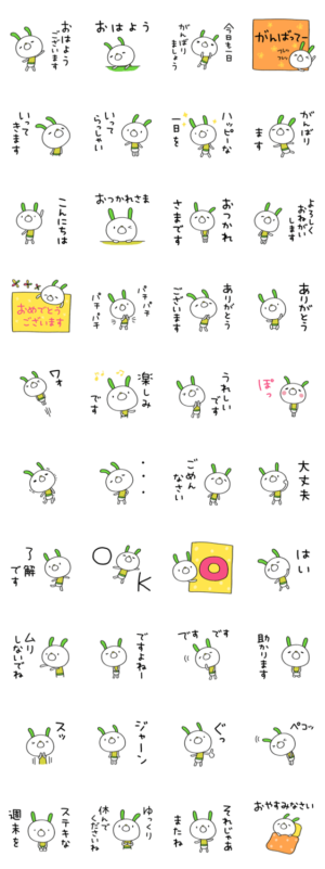 コケくまシリーズ。コケうさ。挨拶編。「おはよう」「こんにちは」から「ハッピーな一日を」まで。コケうさで軽快にあいさつを届けよう。家族、学校、お仕事でも。Mami / エストループ より発売