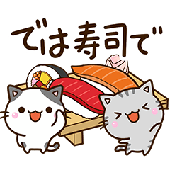 ねことお寿司のスタンプ。寿司を食べたいとき、頭の中が寿司でいっぱいのとき等、おすしとネコが好きな方にぜひ。うなぎ好きの方へ『5匹のちび猫とうなぎ』もあります。かたこ より発売