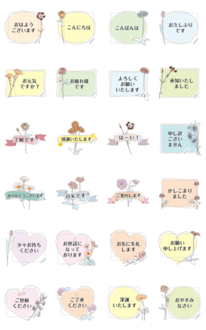 シンプルな線画の花、パステルフレームいろいろ。好きなテキストを自由に入力して、毎日の挨拶やおしゃべりにご利用ください。 現在この商品は一部のスマートフォン版LINE 10.3.0以上のトークルームでのみ使用できます。動作環境の最新情報はヘルプをご確認ください。acacia より発売
