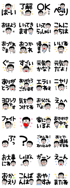 大きな文字で見やすく選びやすい,かわいいお父さんのスタンプです。satomi より発売