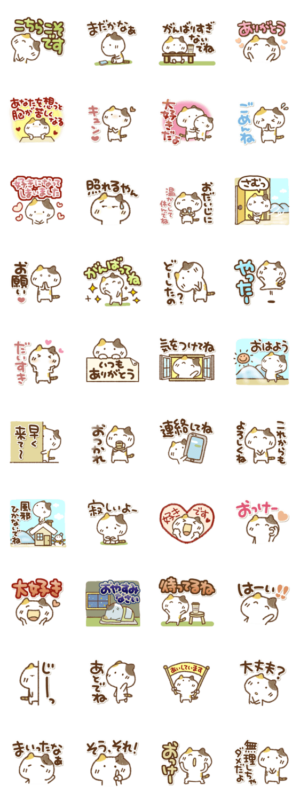 大切な人に気持ちを伝える三毛猫にゃん助の可愛いスタンプです。takopon より発売