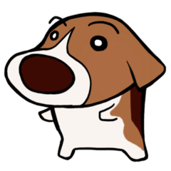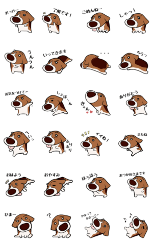 ビーギー犬(ビーグルとコーギーのMIX)「ハナ」のスタンプです。 顔はビーグルで耳は垂れていますが小さく、体つきはコーギーで尻尾がありません。みー より発売