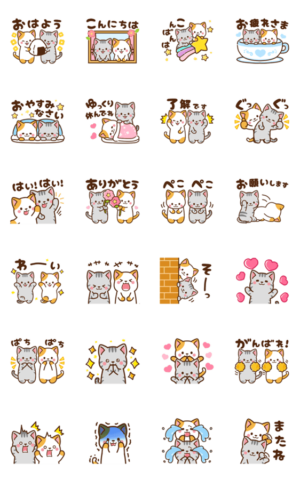 ねこの兄弟デビュー。 兄、二毛猫のモカ。妹、アメショーのミルを、日常で使えるシンプル&かわいい仕草で敬語や挨拶の動くスタンプにしました! 大人/女の子/ハート/子猫Haruna より発売
