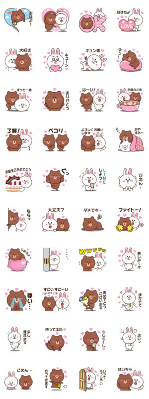 コニー&ブラウンのラブラブスタンプの第二弾です♪恋人や友達に大好きな気持ちを表現しましょう♪