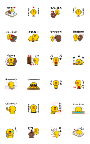ブラウン&フレンズ/コニー/サリー/ひよこ/雛/ヒヨコ/鳥/とり/鶏/トリ/LINEキャラクターズ/毎日使える/挨拶/日常会話/男女/ペア/パートナー/カップル/恋人/家族連絡 ※BROWN & FRIENDS をみんなでつくろう!キャンペーン参加スタンプです4A-Studio(よんえーすたじお) より発売
