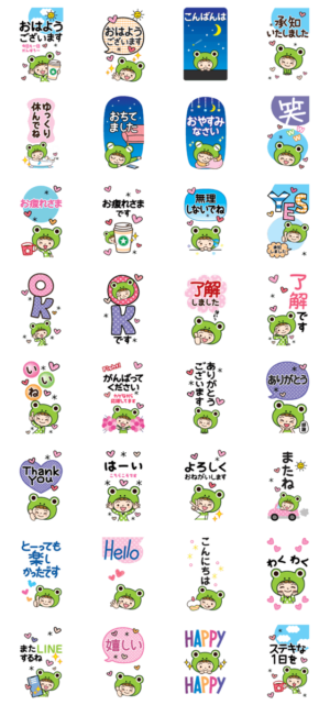 カエルのかぶり物した大人かわいい女子♡BIG♪通常のスタンプよりもトークルームで大きく表示されるスタンプです。 ダイナミックな表現ができます。 KEN graphic ※このスタンプはトークルームで大きく表示されるBIGスタンプです。KEN グラフィック より発売