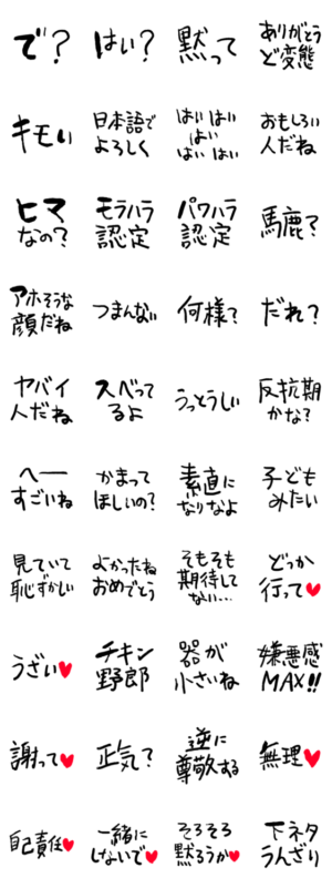 黙ってて欲しい人に送る優しい毒舌煽りスタンプ。バカ、子ども、ウザイ、悪口、おもしろ、面白い、挑発、あおり、煽りレベル最強イッレ・コスヤ より発売