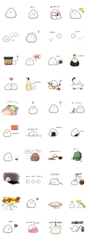 いきてるおにぎりのスタンプだよ。メソつきやすいよ。やさしくしてね。れもちゃん より発売