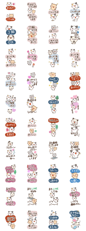 『ちびミケ』の三毛猫や、『ちびシャム』のシャムネコ、『ちびブチ』のぶち猫、アメショ等の猫が登場する、基本的な大人のビッグスタンプ。ねこ好きの方にぜひ。【かたこ】 ※このスタンプはトークルームで大きく表示されるBIGスタンプです。かたこ より発売