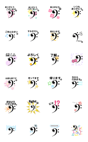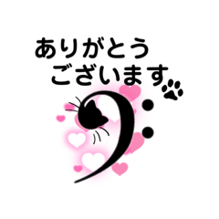猫シルエットのヘ音記号。日常言葉・敬語のシンプルなスタンプです。音楽・ネコ好きさんへ。ニャンコ肉球付き❤︎みろにぃ より発売
