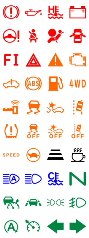 車とバイクの警告灯(インジケーター)を40種類集めました。