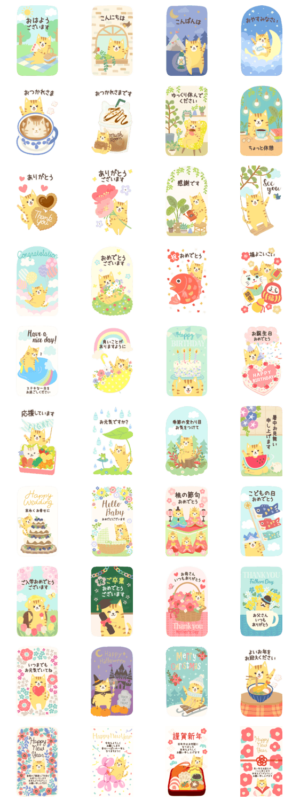 甘さ控えめ大人女子向け茶トラ猫のグリーティングカード♪毎日のあいさつに使える敬語から、特別な日のお祝いや季節の挨拶・気遣い言葉と 春夏秋冬使えます。シンプルねこ ※このスタンプはトークルームで大きく表示されるBIGスタンプです。mush より発売