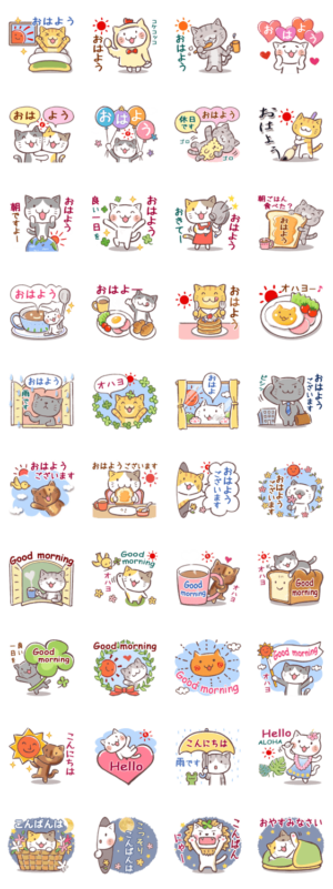 32個の「おはよう」と「こんにちは」「こんばんは」入り。1ヶ月毎日違うスタンプを使のもよし。その日の気分や相手によって選ぶのもよし。Mikitora より発売