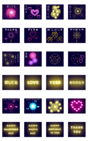 花火のポップアップスタンプ第三弾です。画面いっぱいに花火を打ち上げよう。いろんな花火で気持ちを伝えよう。バレンタイン関連も入ってます。パルピー作。書き下ろし。