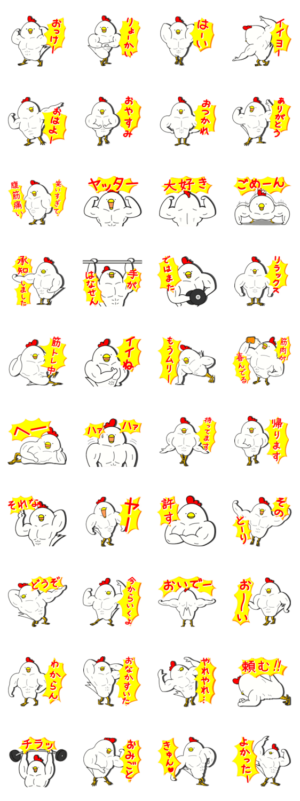 立派な大胸筋が笑えます。昨今の筋トレブームに合うおもしろいスタンプです。もう少し線が太めのほうがハッキリしていいと思いました。