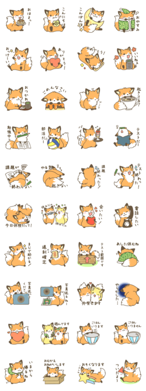 食いしん坊キツネの学生用スタンプ スタンプ画像一覧