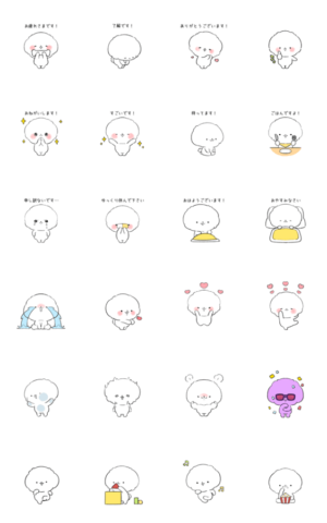 会社でもオススメ♪丁寧な返事から日常会話、毎日の挨拶まで、敬語で使いやすい犬のスタンプです。ふわふわでかわいい真っ白なわんこが愛嬌たっぷりにリアクションします!misya より発売