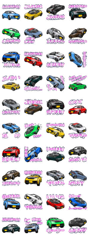 スポーツカーで日常会話のスタンプはいかがでしょうか。あさごはん より発売