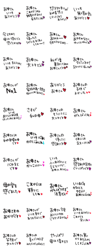 お母さんに送るシンプルな日常会話スタンプです。母に送るスタンプ