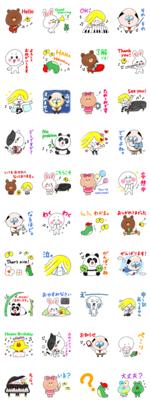 ピアノやフルート、音楽が大好きなあなたへ。BROWN&FRIENDSの毎日使える敬語スタンプです。サリーや部長、パンヨもいるよ!誕生日も一緒にお祝いしてね! ※BROWN & FRIENDS をみんなでつくろう!キャンペーン参加スタンプですともいろ より発売