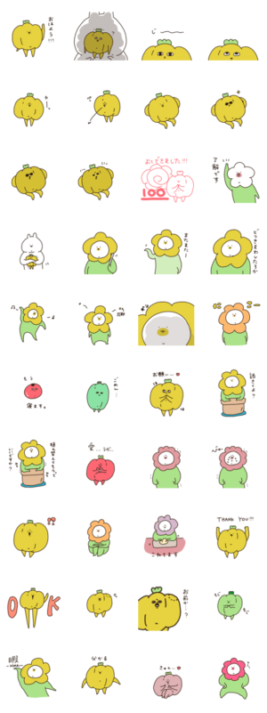ゆるくて新鮮な野菜とお花とうさぎのほのぼのスタンプです。ウ より発売