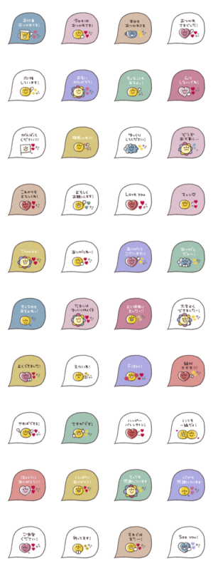 気持ちを伝える、1つあると便利な省スペーススタンプです。シンプル/かわいい/大人可愛い/くすみ/毎日使える/ふんわり/ゆる/吹き出し/スマイル/あいさつ/敬語