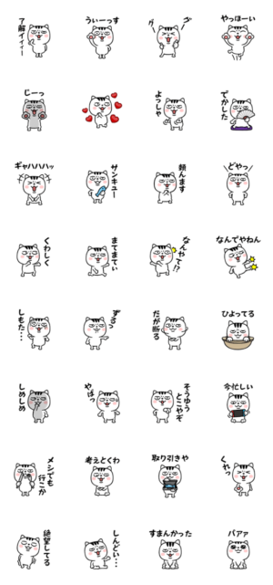 やさぐれねこのニャンゴロス。口が悪く汚い言葉や関西弁を使う猫。芋ジャージの名前スタンプの『くーが』作くーが より発売