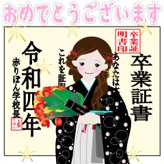 赤いリボンがお気に入り。卒業式スタンプ。2022年。令和4年。袴 卒業おめでとう ありがとうございます 卒業証書 チューリップ 桜 学校 祝卒業式 花火 紙吹雪 ※このスタンプはトークルームで大きく表示されるBIGスタンプです。nae78YAMA より発売