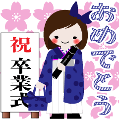 S/青いリボンの女の子 卒業式 袴 2022 スタンプ画像一覧