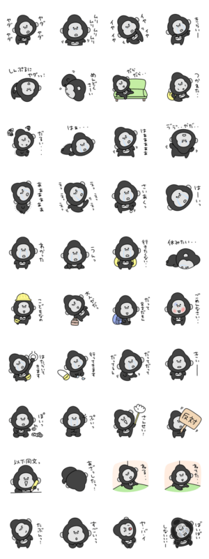 シュールなミニゴリラのイヤイヤ期スタンプです。※再販です。eribo より発売