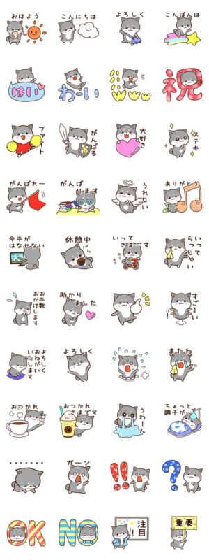 お茶目でかわいいクロしばいぬのスタンプ。毎日使えるあいさつや、丁寧な言葉、基本的なものまであり、ずっと使えます。コーギーや秋田犬等が好きな方にもぜひ。【かたこ】かたこ より発売