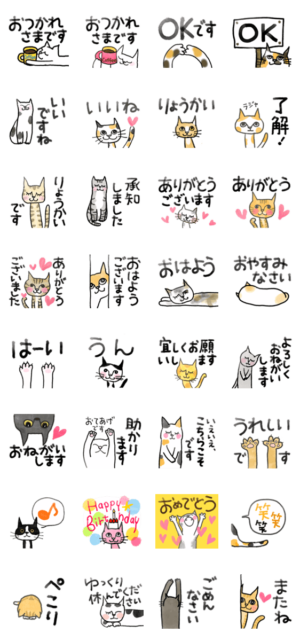 ねこ+ねこ+ねこ 【日常★敬語★お祝い】 スタンプ画像一覧