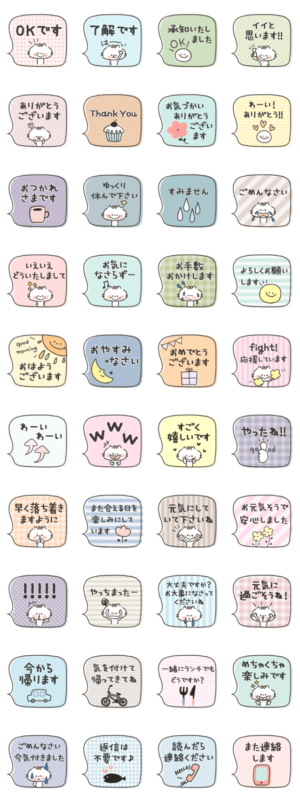 可愛すぎず丁寧すぎず、職場関係やママ友同士でも使いやすいです。淡い色合いも可愛いですし、色々なシチュエーションの言葉がたくさん入っているのもお得でよいと思います。
