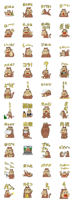 猫になったんだよなゴリラ。かわいいネコゴリラの「ニャホホイ」とおいしそうなバナナ文字の大きくて見やすいBIGスタンプです。通常スタンプ、絵文字と着せ替えもよろしく ※このスタンプはトークルームで大きく表示されるBIGスタンプです。ウホホイ・ホイホーホ より発売