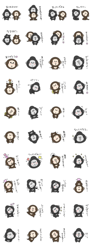 優しさの塊♡シュールなミニゴリラ&ミニ猿のスタンプです。※再販です。eribo より発売