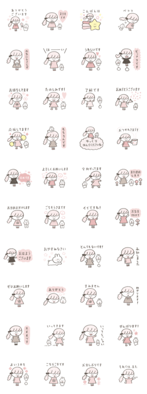 大人かわいい女の子とうさぎのスタンプです。落ち着いた色合いで使いやすいです!大人ガーリー/大人女子/くすみピンク/くすみカラー/ウサギ/シンプル/日常/ナチュラル/丁寧