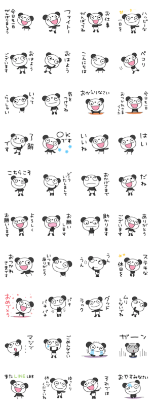 「こんにちは」「お仕事がんばってね」から「ステキな休日を」まで。ふんわかパンダで、さわやかな挨拶を届けよう。家族、学校、お仕事でも。