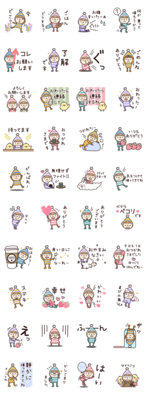 家族相手でなくても使えるものもあるが、ごはんどうする?や、何か買って帰ろうか?はとても便利。癒し系なところも受け取る側も心地よいと思う。