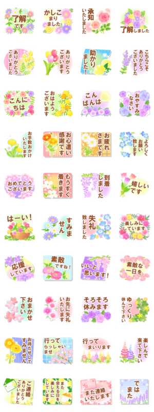 花いっぱいの大人可愛い敬語スタンプです。大きめの文字で使いやすい敬語を集めました。家族や友人お仕事のやり取りなど、たくさん使って下さい♪