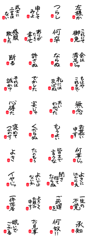 古風な武士語にニコちゃんハンコを添えて。家族連絡、ママ友会話、お仕事に。イッレ・コスヤ より発売