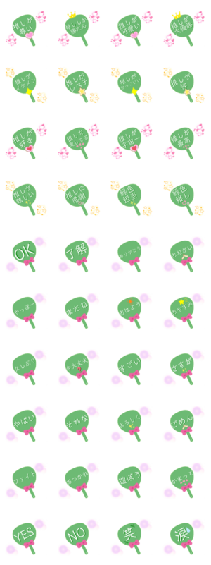 推し活にはもちろん、普段使いもできる、緑色うちわスタンプです。アイドル、声優、アニメ、漫画などなど様々な推し事に使ってください!