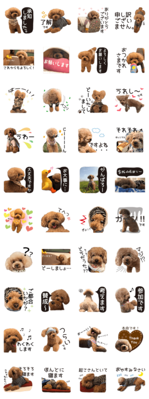 トイプードル写真スタンプ。Lサイズ文字で見やすくしました。日常使える挨拶、感情、気持ち多めに…