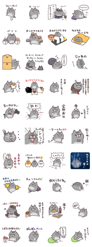 まるっとしたシルエットが可愛いねこのスタンプです。コミカルな表情や台詞で笑顔になれます!
