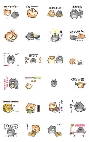 動くボンレス犬とボンレス猫4 スタンプに書いてある文字一覧