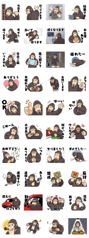 見れば見るほどスーツのゴリラに愛着がわいてしまうようなスタンプ。