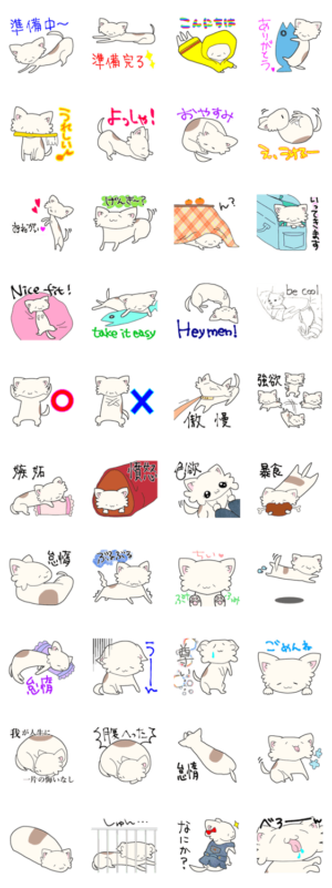 チワワのちいちゃんのスタンプ。ずぼらスタンプ!とりあえずスタンプで返信、というずぼらなあなたにピッタリ!日常使いに最適です!戌年にもどうぞ。