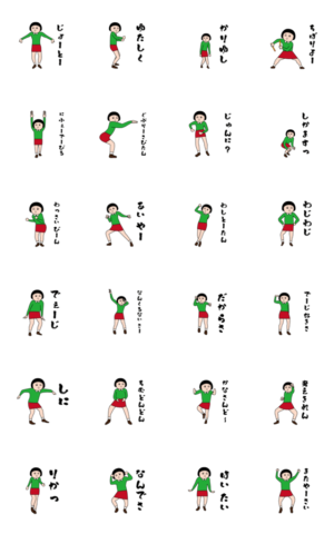 パッと見ダサいけど、昭和味があってかわいいスタンプ(沖縄特別編)いつもの芋ジャージを着替えて沖縄弁しゃべってます
