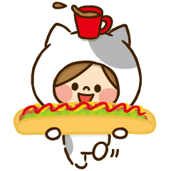 かわ主婦第63弾【スーパー猫の日編】はかわいい女の子のねこの着ぐるみスタンプです!ミケ・サバトラ・茶トラ・黒猫・白猫・ハチワレ...敬語入りで使いやすい!