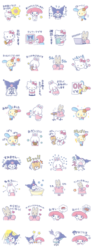 はたらく!サンリオガールズのスタンプは、敬語なので幅広い方に使えるスタンプです!キャラクターたちがかわいくて癒されます!