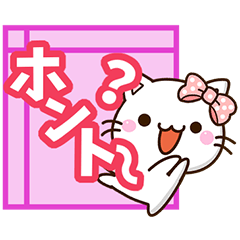 リボンをつけた小さい白猫『ちびシロ』。選びやすく大きな文字スタンプ。明るいカラフルな文字のネコスタンプでどなたにでも使えます。しろねこ好きな方にぜひ。【かたこ】